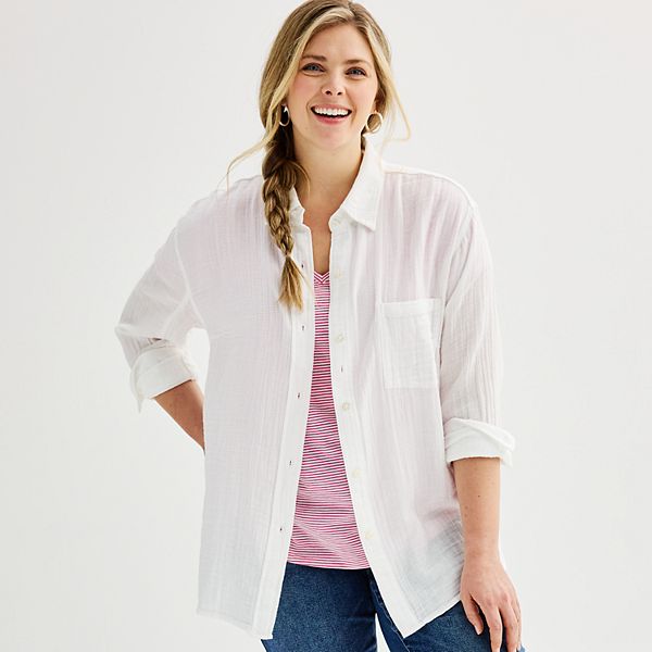 Plus Size Sonoma Goods For Life® Gauze Boyfriend Shirt